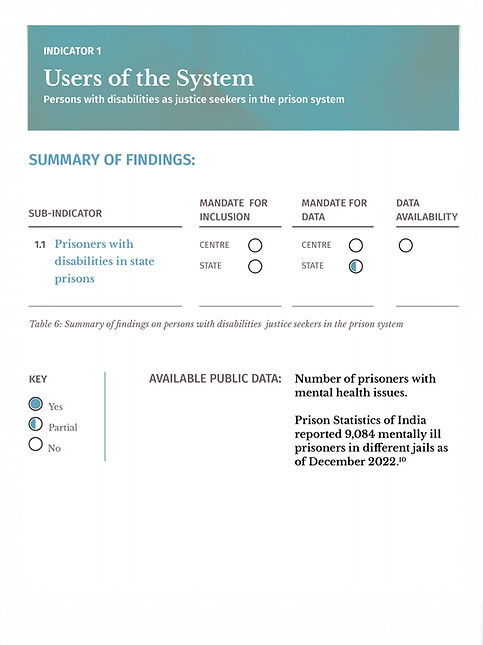 The findings highlights the systemic lack of data across the justice system vis-a-vis persons with disabilities, and implementation of measures of inclusion despite mandates for disability inclusion urges the case for better data collection and public reporting of such data.